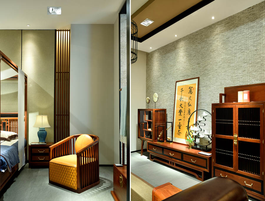 對(duì)于新中式風(fēng)格,在燈光應(yīng)用上,一定要突顯出中式風(fēng)格家具的典雅,并點(diǎn)綴出屬于現(xiàn)代年輕人的現(xiàn)代氛圍。