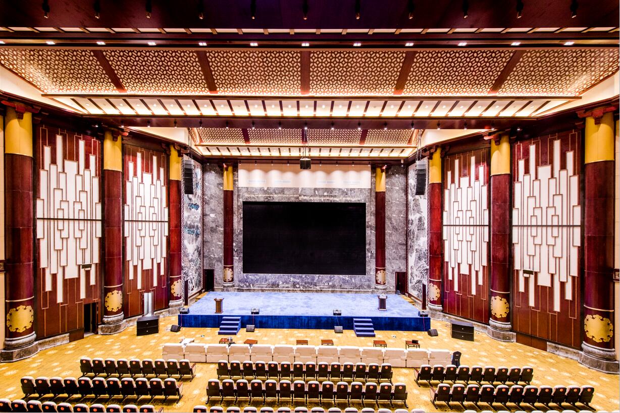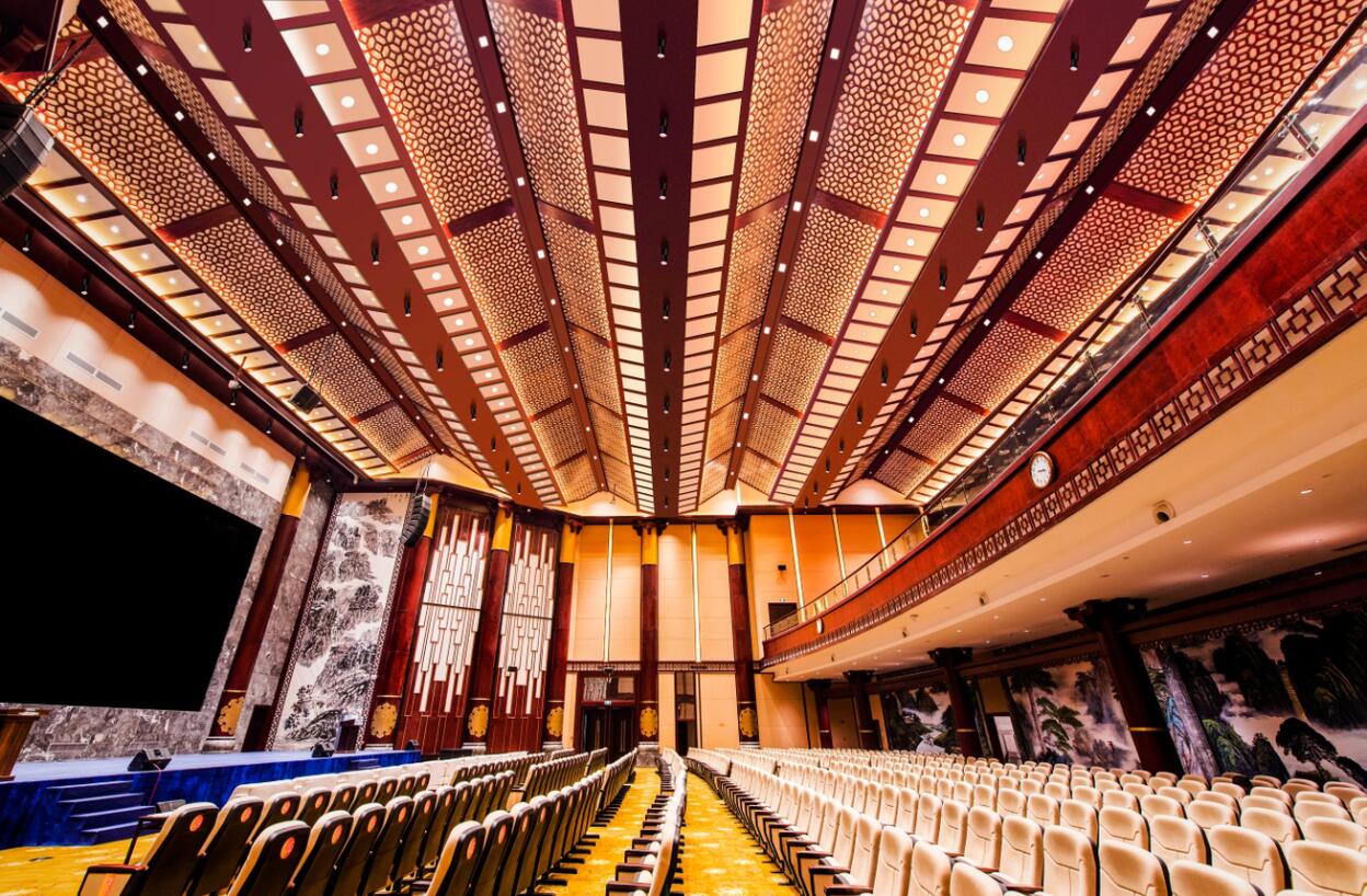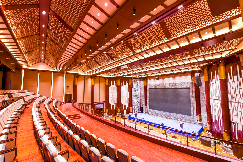 大會議廳具備大會開幕式、大型國際會議、報告會、新聞發(fā)布會等功能,可最多容納754人舉行會議。會議中心氣氛較為莊重,設(shè)計相對簡約、大方,注重交談氛圍。