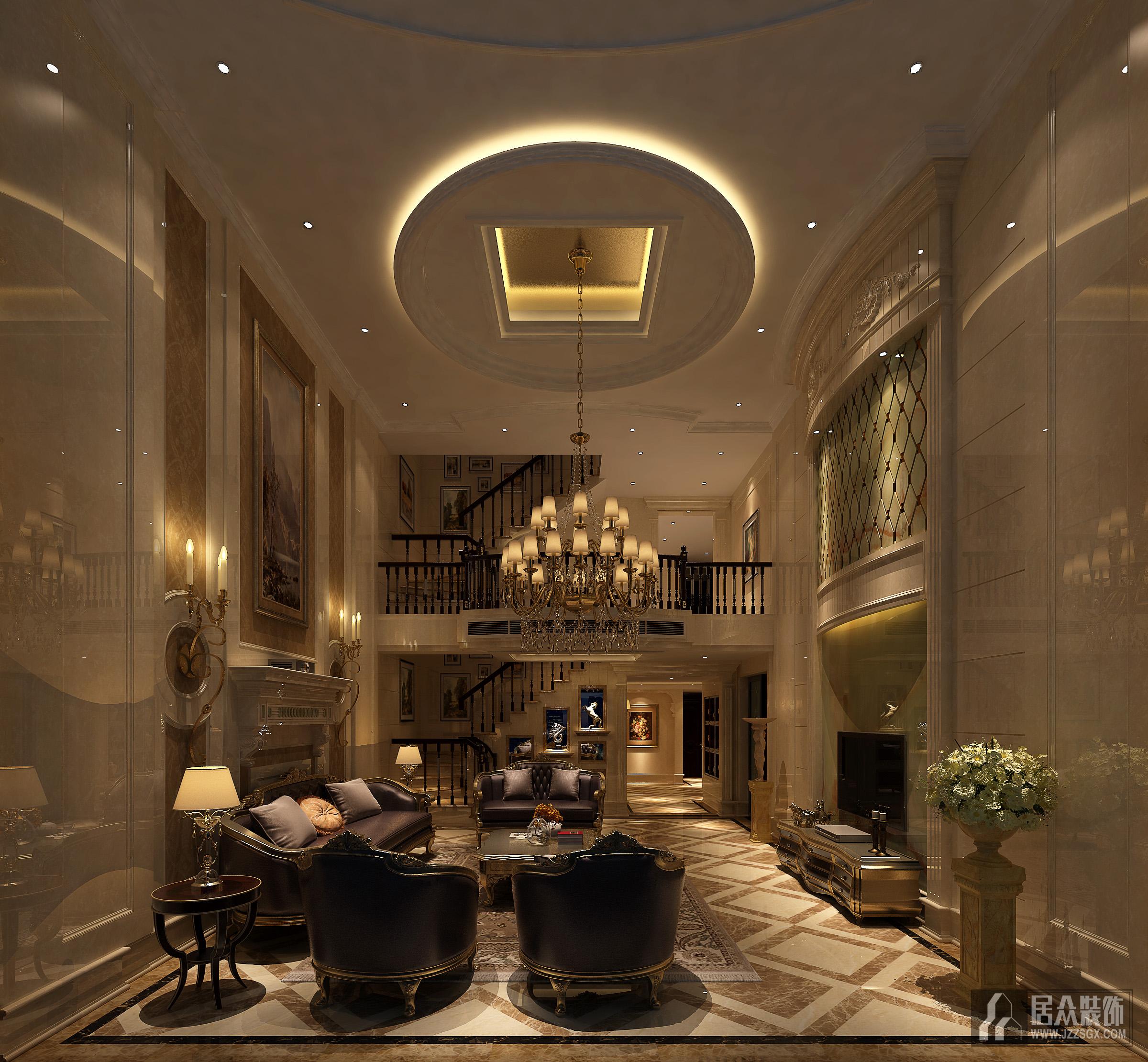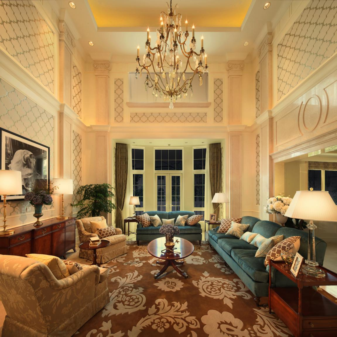 圖:富麗華貴的豪宅設(shè)計風(fēng),搭配暖黃色光,有木有一種皇室家族既視感。(圖片源于Geosheen極成案例)