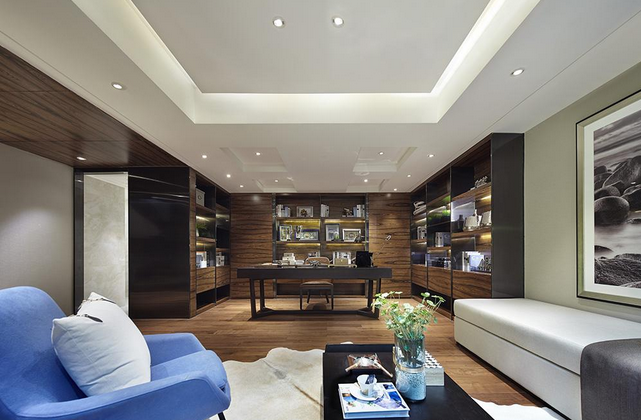 圖:典型的見光不見燈照明手法,利用燈槽中的燈帶以及嵌入式筒燈來照亮空間,不僅最大程度的減少眩光,且不會因燈具的布置而破壞空間的完美統(tǒng)一(圖片源于Geosheen極成案例)。
