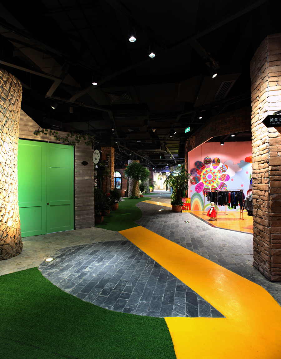 親子也是室內(nèi)空間重要元素之一,他不僅有小鎮(zhèn)街角的小巷子,路邊懷舊的小清新,主題卡通人物的親子空間也是吸引家庭人群停留的重要空間。針對這個空間的照明,我們?yōu)槊總€卡通人物都輔以窄角度的重點(diǎn)照明,讓小朋友來到這個空間時(shí)非??斓恼业阶约鹤钕矚g的動漫角色。