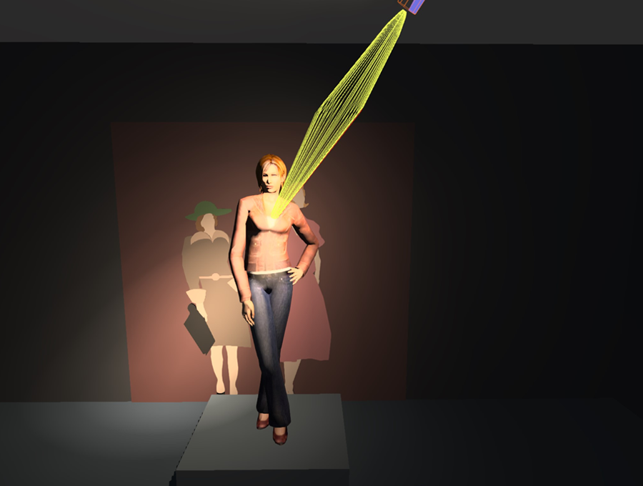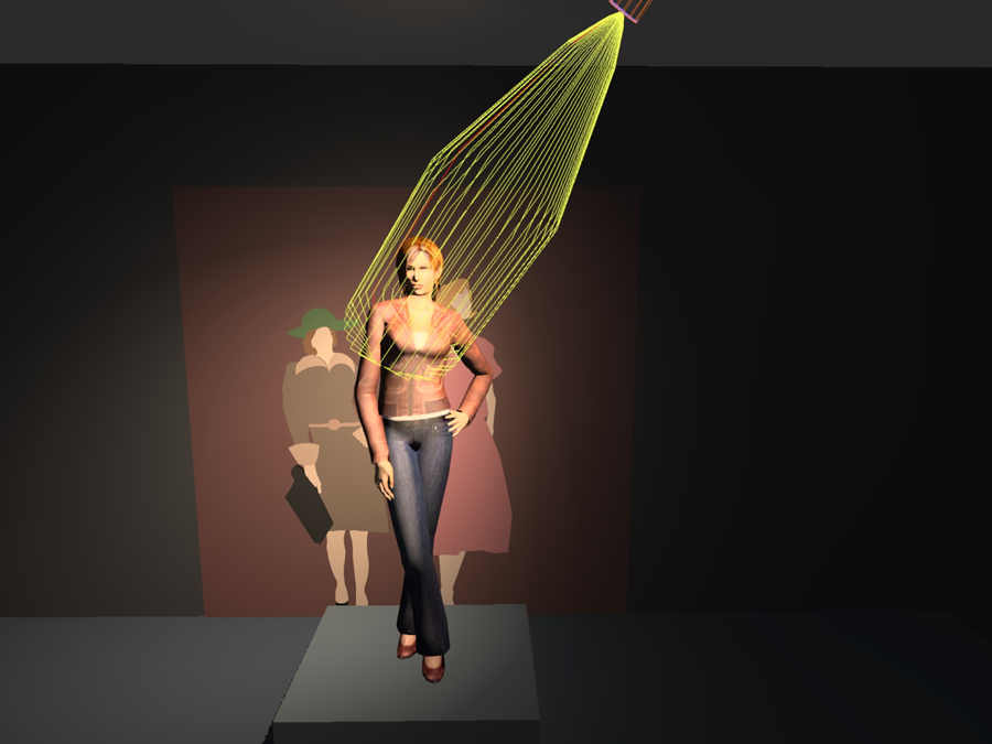 圖:15°光束角軌道射燈從前下方往上照射,可以表現(xiàn)較高模特的細(xì)節(jié)