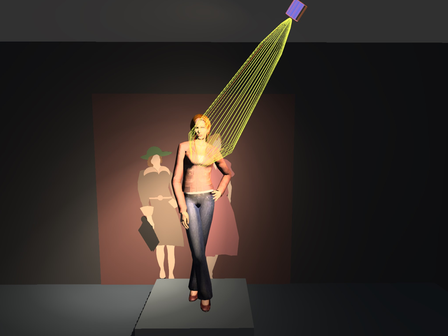 同一光束角,不同位置,模特照明的效果