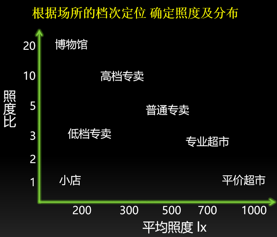 圖:不同場(chǎng)所檔次定位的照度比值(圖片來(lái)源云知光照明微課堂)
