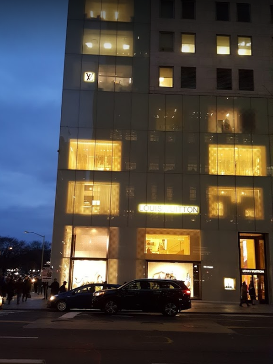 圖:這是Louis Vuitton 在紐約的旗艦店,自帶圣光的LOGO,低色溫襯托、明黃高調(diào)的內(nèi)透,營(yíng)造奢華不失時(shí)尚的韻味。透露著一種“貴族”氣息(圖片來(lái)源網(wǎng)絡(luò))