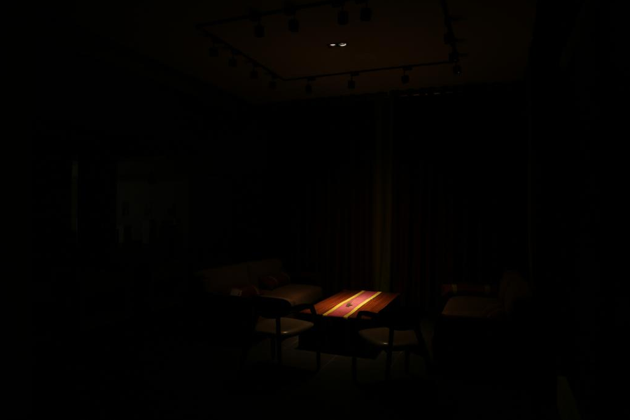 圖:沒人靠近休息區(qū)時,桌子上面的燈光提供亮度,做為“提醒”、點綴的作用(圖片來源極成光電展廳)