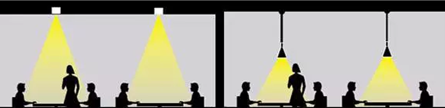 圖:不同的兩種燈具照明效果,分別是嵌入式燈具和吊燈(圖片來源云知光照明微課堂)