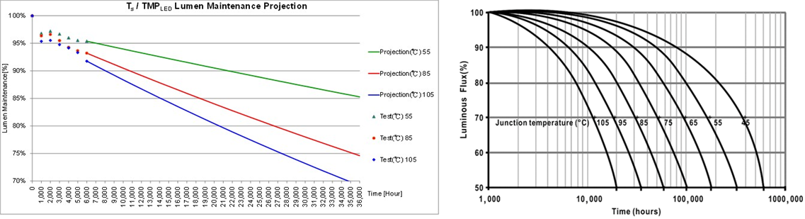 光衰和壽命有衡量的標(biāo)準(zhǔn),一般來說都標(biāo)識L70/B50,逼格高的品牌也有標(biāo)示L80/B50的。什么意思呢?就是測量當(dāng)50%的產(chǎn)品光輸出降至初始值70%以下時(shí)所用的時(shí)間。