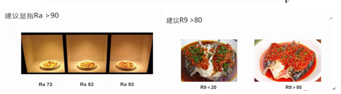 燈光的設(shè)計(jì)實(shí)現(xiàn),空間的良好體驗(yàn)很大程度上依賴于燈具良好的光品質(zhì)。光品質(zhì)的主要體現(xiàn)在以下四個(gè)方面:合適的色溫、顯色指數(shù)(特別對(duì)紅色的還原指數(shù)R9)以及眩光控制。