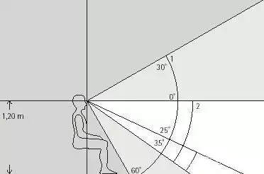 圖:人眼正常的注意視線范圍是平視上方30°到下方60°,在這個范圍內(nèi)出現(xiàn)刺眼的光線,就是眩光