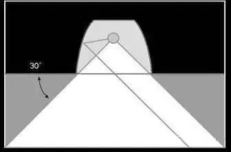 圖:只要燈具發(fā)出的光線全部控制在>30°的截光角之內(nèi),就可以說這個燈具是防眩的